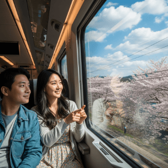 - 기차와 벚꽃이 함께 보이는 풍경